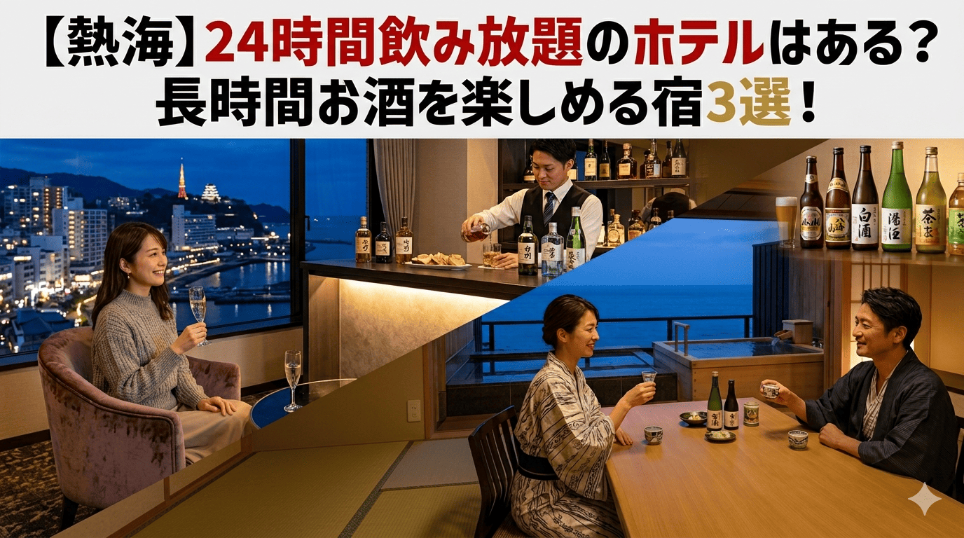 熱海旅行といえば温泉と海鮮が定番ですが、お酒好きにとっての正解は「どれだけ長く、自由に飲めるか」ではないでしょうか。しかし、飲み放題といっても「夕食の90分だけ」という制限に、少し物足りなさを感じることもありますよね。