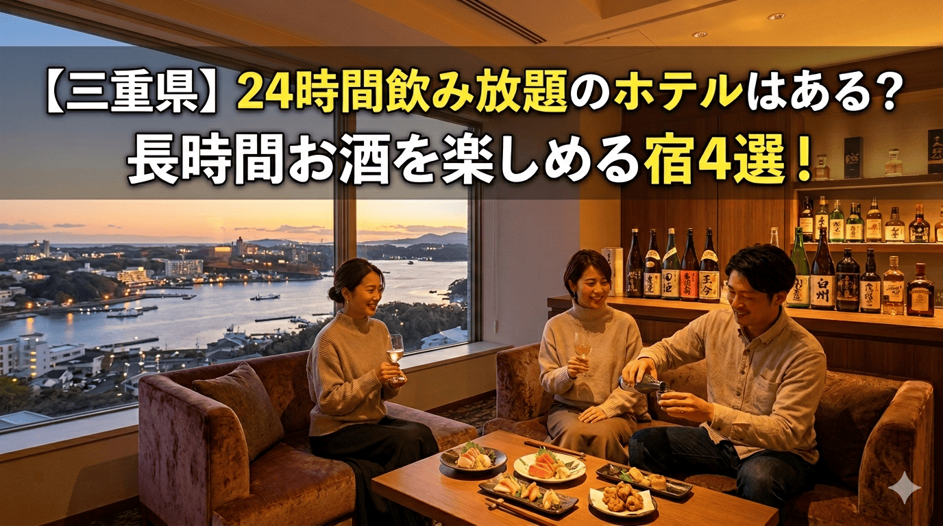 三重県には、宿泊代金に食事やドリンクが含まれる「オールインクルーシブ」の宿が実はかなり充実しています。残念ながら「完全に24時間アルコール提供」と明記された宿はありませんでしたが、それに限りなく近い「長時間提供」の宿がいくつか見つかりました!