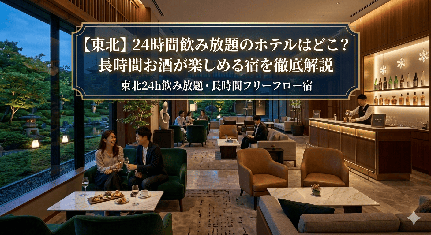 東北エリアは、実は全国でも有数の「オールインクルーシブ」激戦区。24時間アルコールが提供される宿から、朝食からお酒が飲める宿まで、お酒好きにはたまらない環境が整っています。